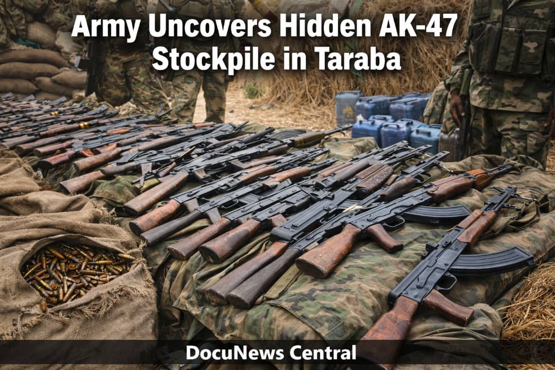 A carefully coordinated military operation in northeastern Nigeria has triggered fresh conversations about arms trafficking, internal security, and the complex networks that sustain criminal dominance in rural communities. Over several weeks, intelligence officers tracked unusual movement patterns across remote settlements, monitored silent supply routes, and gathered testimonies from residents who had grown uneasy with unfamiliar faces appearing after dusk. And a headline was made “Army Uncovers Hidden AK-47 Stockpile in Taraba”