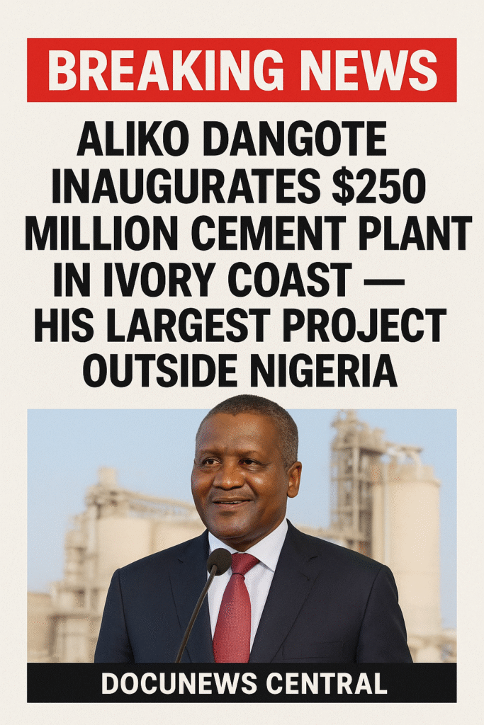 Aliko Dangote Inaugurates $250 Million Cement Plant in Ivory Coast — His Largest Project Outside Nigeria