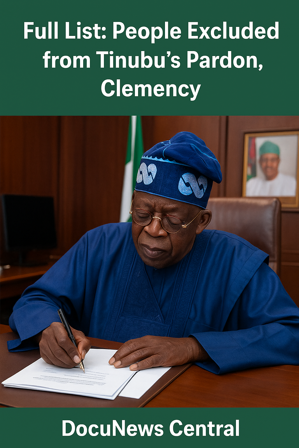 Legal analysts have applauded Tinubu’s decision to exclude these individuals, calling it a major step toward restoring confidence in Nigeria’s justice system. A senior constitutional lawyer told DocuNews Central Politics Desk that the President’s move signals a shift toward accountability, adding that “pardon is a tool of mercy, not a political instrument.”