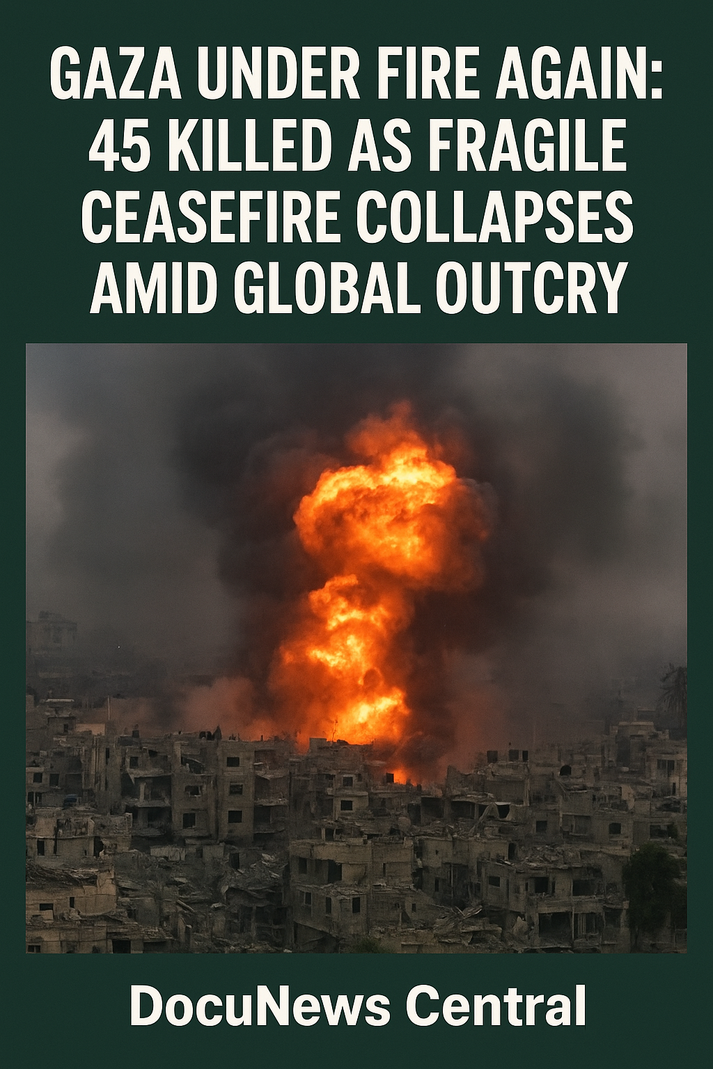 By DocuNews Central — In yet another tragic turn of events, the Gaza Strip has witnessed renewed violence as Israeli airstrikes reportedly killed at least 45 people across the enclave on Sunday. According to Hindustan Times and France24, Gaza’s Civil Defence agency and hospital sources confirmed the rising death toll, updating an earlier count of 33.