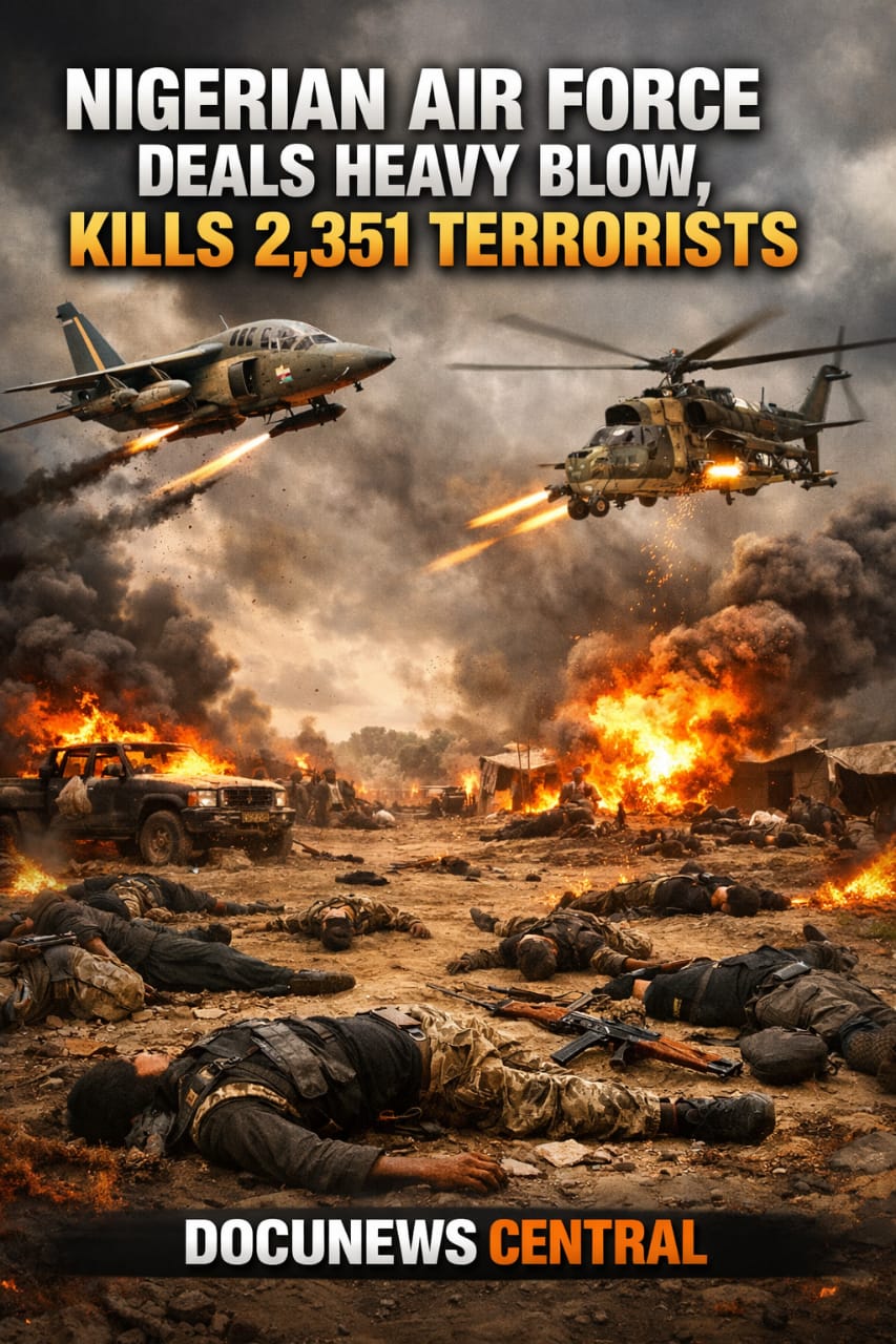 The Nigerian Air Force has recorded a major operational breakthrough after confirming that 2,351 terrorists were killed during sustained air operations carried out throughout 2025. The disclosure highlights one of the most intensive aerial campaigns in recent years, reflecting a deliberate shift toward intelligence-led precision strikes. And this made a headline on DocuNews Central which is Nigerian Air Force Deals Heavy Blow, Kills 2,351 Terrorists. Read full News details below.