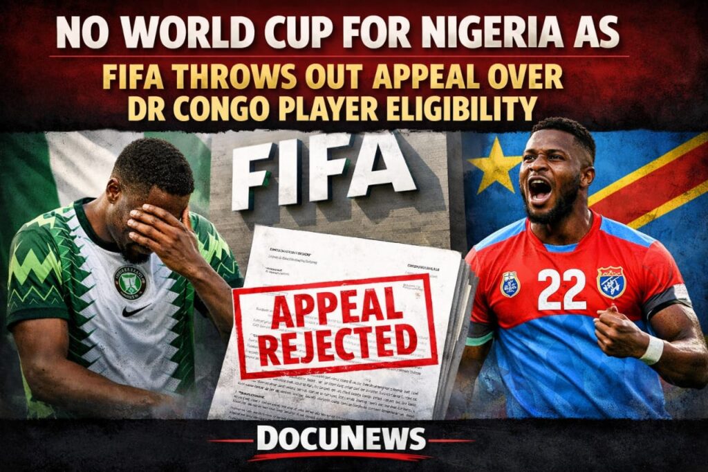 FIFA Rejects Nigeria’s Appeal on Player Eligibility. Nigeria’s quest to qualify for the 2026 FIFA World Cup has suffered a crushing blow after FIFA officially dismissed the country’s appeal over the eligibility of a Democratic Republic of Congo (DR Congo) player. As a result, the world football governing body upheld the original match result, leaving Nigeria without any administrative route back into contention.
