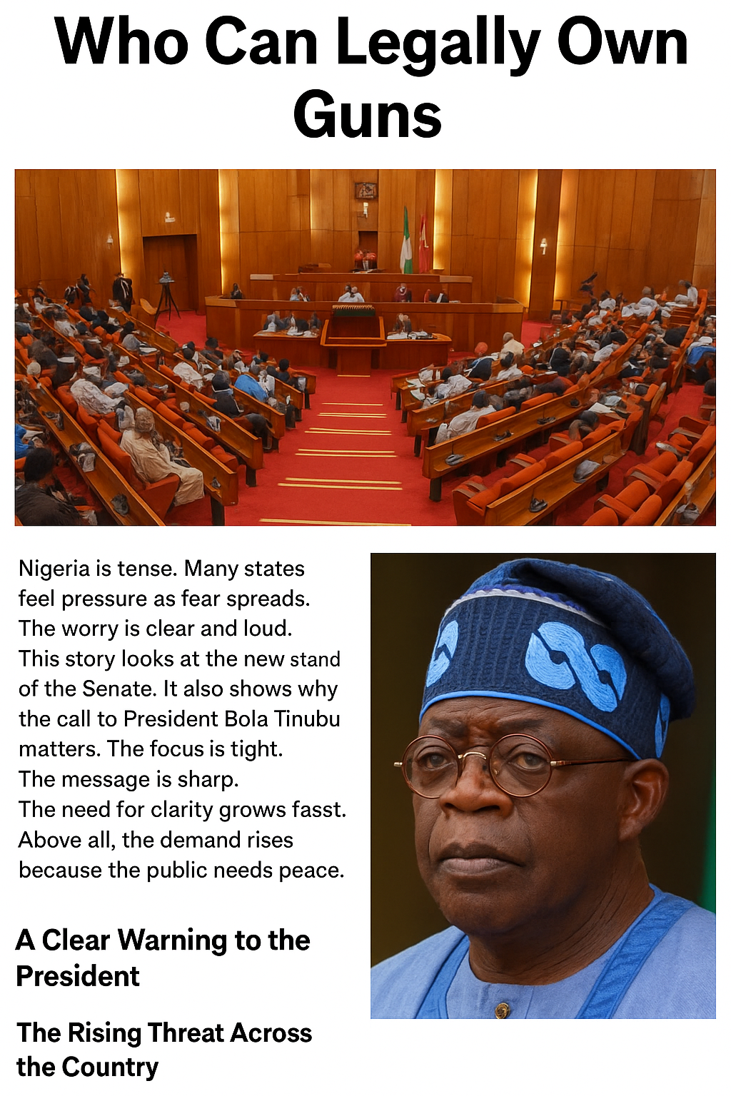 Nigeria has laws on arms. Yet many citizens do not understand them. Because the rules feel vague, the Senate wants a fresh guide. With a clean law, the public can know who may own, carry, or keep firearms.